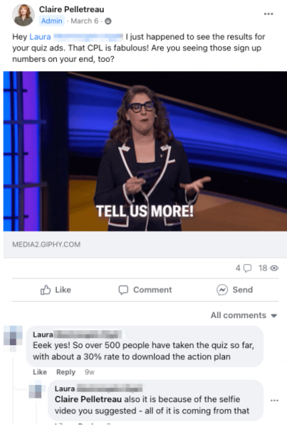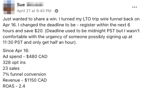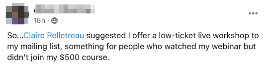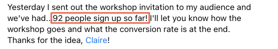 I've spent $6,300 in Facebook ads... and I've generated 4,000 leads... The workshop has brought in just over $10,000, so that's made $4,000 and brought 4,000 people onto my email list for free. Just the confidence that I know how this skill is going to help me with my business for years to come, and so just having that in my back pocket for when I need it is just really great to have."