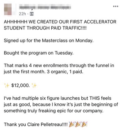 3. Finally, absolutely nothing compares to the feedback you'll get from my messaging and copy coach. The critiques she provides are literally worth your entire investment in this program. She's that expert set of eyes on your conversion copy you always wish you had on retainer.